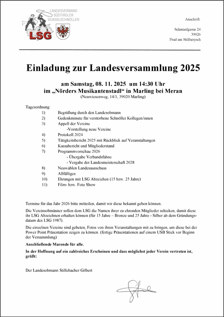 Landesversammlung 2025 des Landesverbandes Südtiroler Goasslschnöller